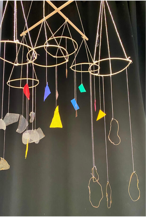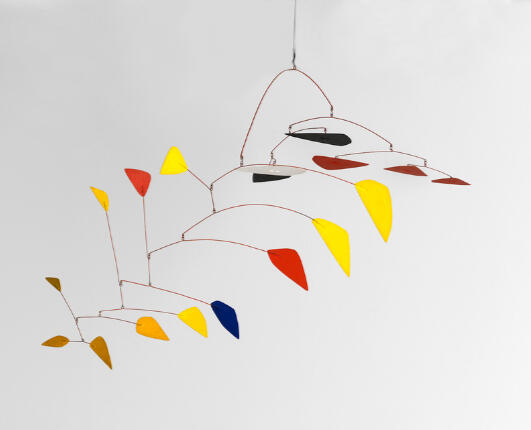 Alexander Calder (1898–1976) war ein Pionier der kinetischen Kunst, bekannt für seine Mobiles, die Bewegung in die Kunstwelt brachten. Mit einer Kombination aus Farben, Formen und Balance schuf er Werke, die sich sanft im Raum bewegten und neue Perspektiven boten. Inspiriert von seinem Stil, haben wir ein eigenes Mobile entworfen, das die Leichtigkeit, Dynamik und Farbwirkung aufgreift, um scheinbar schwerelose Formen im Raum schweben zu lassen.